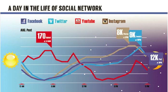 - Instagram สูงในตอนเย็น ๆ เพราะคนถ่ายรูปตอนมื้ออาหารเย็น